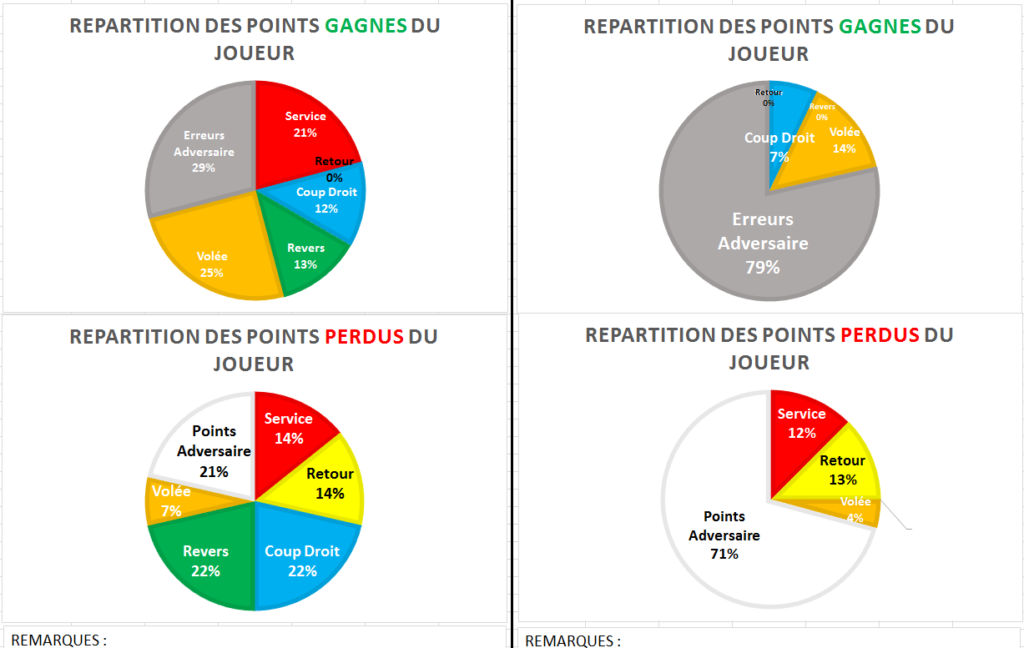 Je me suis servi d’un set d’entraînement que j’ai filmé à l’aide d’une Go PRO. J’ai obtenu les statistiques à l’aide de la méthode de Fabrice Sbarro en utilisant la formation qu’il a créé en collaboration avec Max de Tennis Legend. Ce sont les stats premier degré pour ceux qui connaissent la méthode.