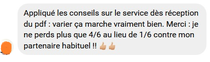 Suite à cette expérience, j’ai souhaité partager mes recherches et autres découvertes sur le service avec les amateurs les plus motivés en créant une formation spécialement dédiée à l’optimisation technico-tactique du service. Cette formation, que tu connais peut-être, je l’ai appelée Service Gagnant. Tu peux suivre ce lien, si tu souhaites en savoir plus.